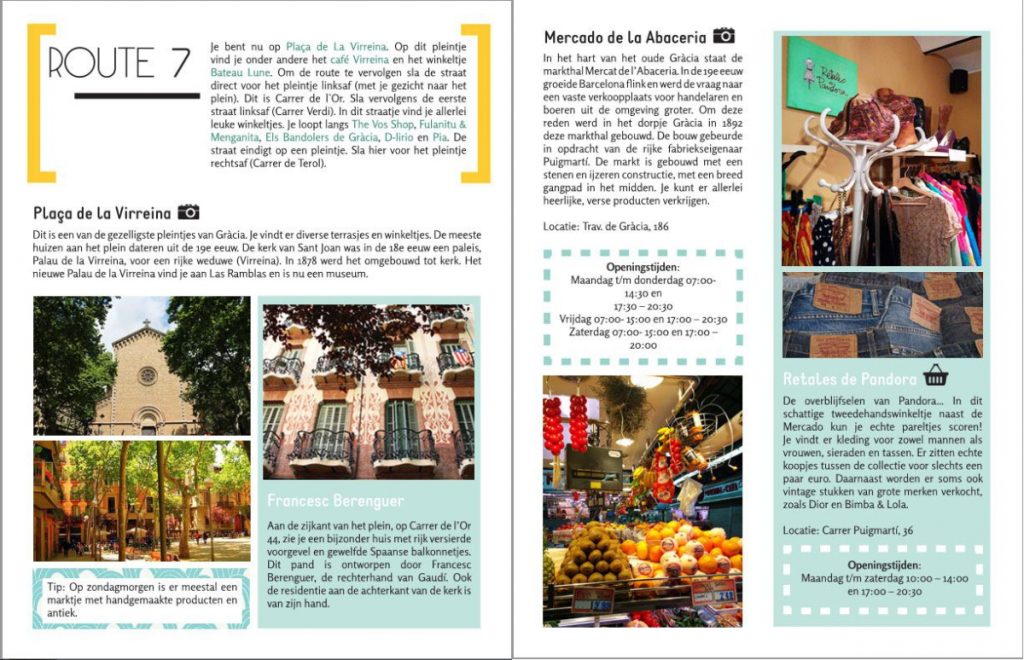 Deze wandelroute (PDF, 44 bladzijdes) is meer dan alleen maar een leuke wandeling. Het is een complete gids die je langs de leukste plekken van de wijk Gràcia voert. Het startpunt is eenvoudig per metro te bereiken. Wandel rond door de authentieke Spaanse wijk, bezichtig de bezienswaardigheden, stop onderweg in een uniek boetiekje en ga lekker uitgebreid lunchen. De wandeling bevat vele tips die met zorg zijn samengesteld, dus je kunt hem zeker nog eens gebruiken wanneer je op een dag op zoek bent naar een leuk museum of een lekker restaurant!
